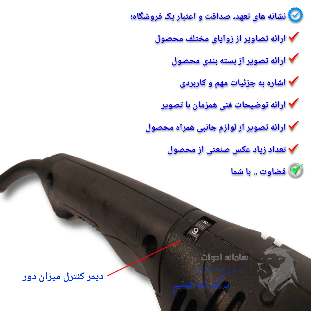مینی فرز دیمردار دسته بلند ویوارکس دارای موتور قدرتمند 1100 وات و قابلیت تنظیم دور در 6 حالت بین 4500 تا 10000 دور بر دقیقه | قابلیت نصب صفحه 125 میلی متری و دارای گارانتی 12 ماهه | جزئیات بیشتر ⇐ توضیحات تکمیلی …