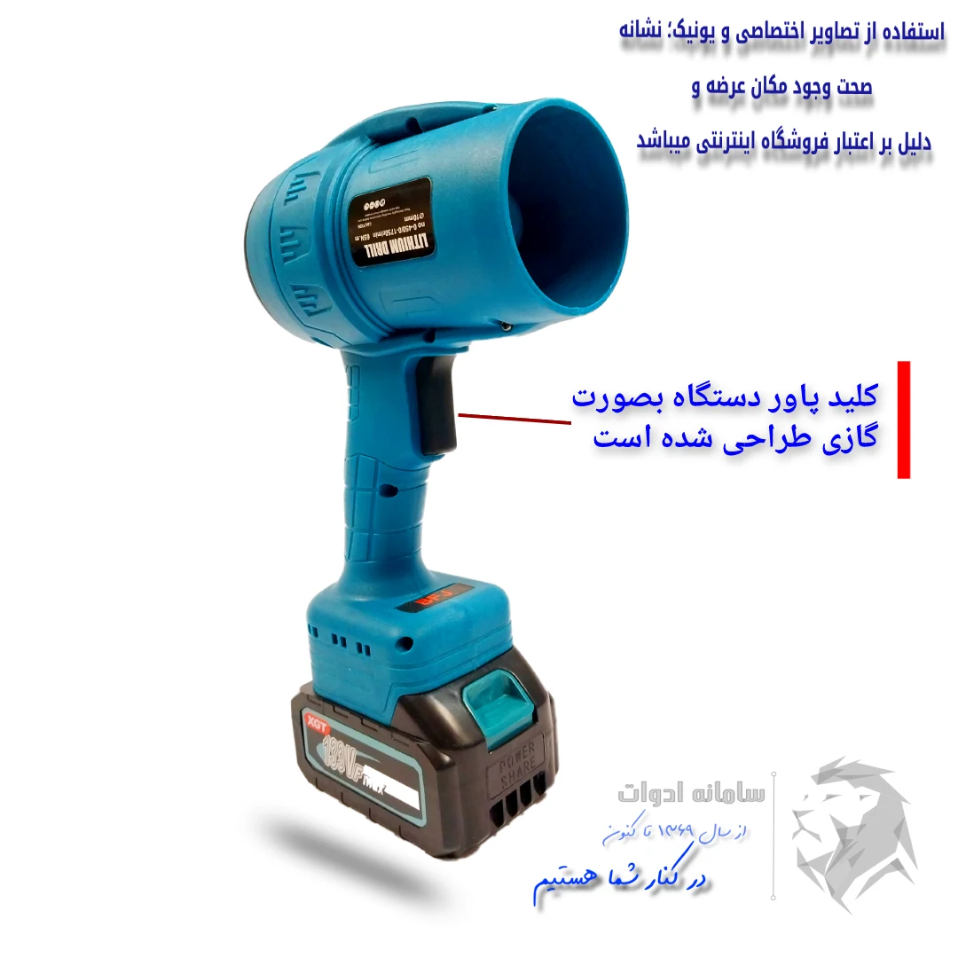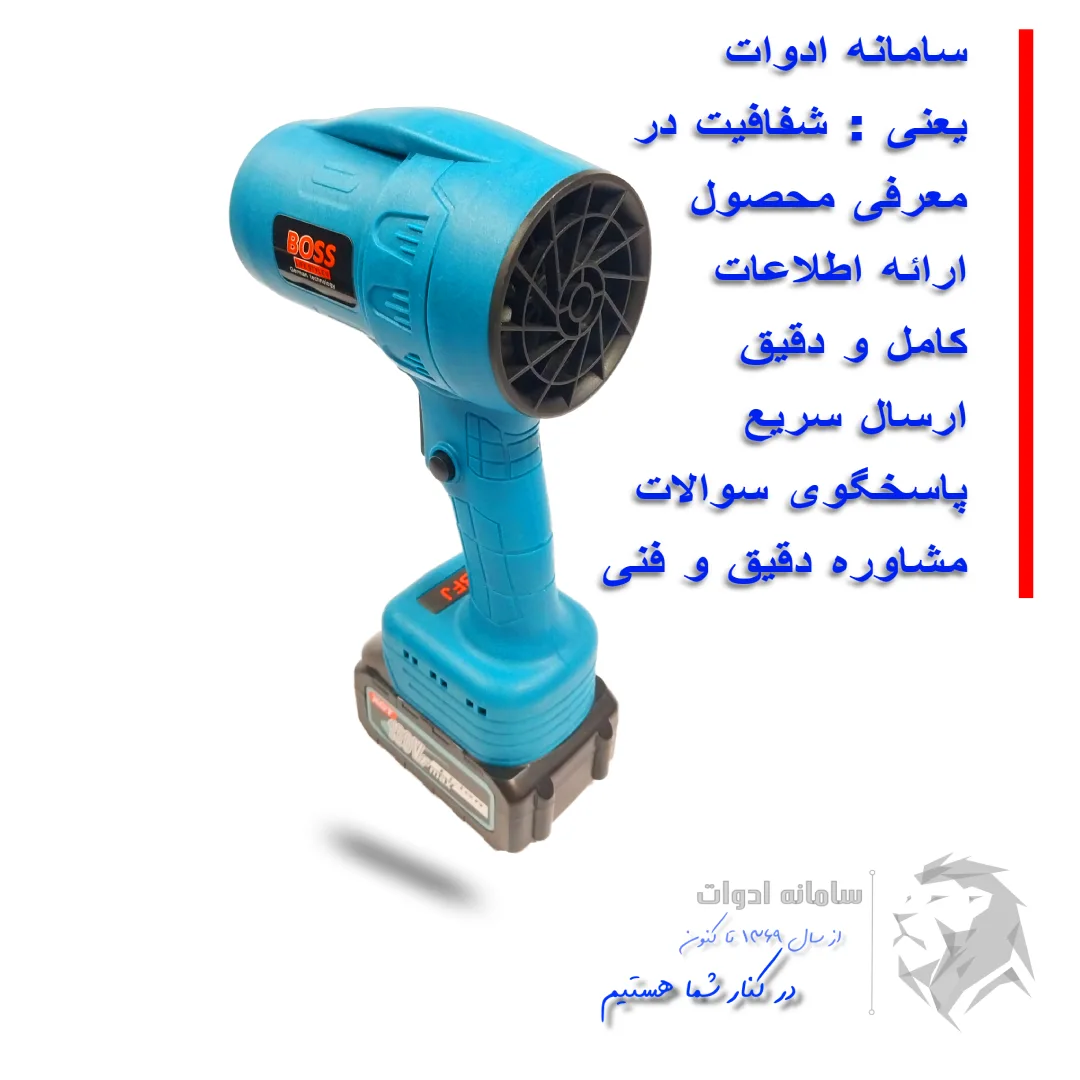 بلوور دمنده و جت فن شارژی باس دارای موتور پر قدرت براشلس | 15 متر مکعب پرتاب باد در دقیقه | همراه 2 باتری قدرتمند 130v | وزن سبک و قابل حمل قرار گرفته در کیف حمل ، قدرت بسیار بالا و مناسب خزان روبی ، برف روبی ، گرد و خاک ، باربیکیو ، کمپینگ و…. | در پایین صفحه ویدئویی از نحوع عملکرد دسگاه های مشابه این بلوور بسیار قوی گذاشته شده است.
