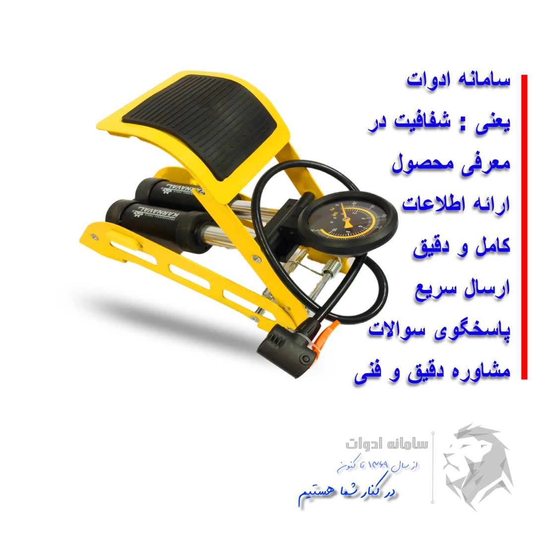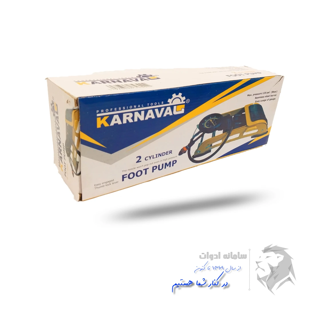 تلمبه پایی دو سیلندر کارناوال دارای دو سیلندر قطور با حداکثر میزان 1200psi تولید باد | همراه نازل اضافه جهت استفاده در تمامی امور | دارای فشار سنج آنالوگ و بدنه آلومینیومی مستحکم و سبک | جزئیات بیشتر ⇐ توضیحات تکمیلی ..