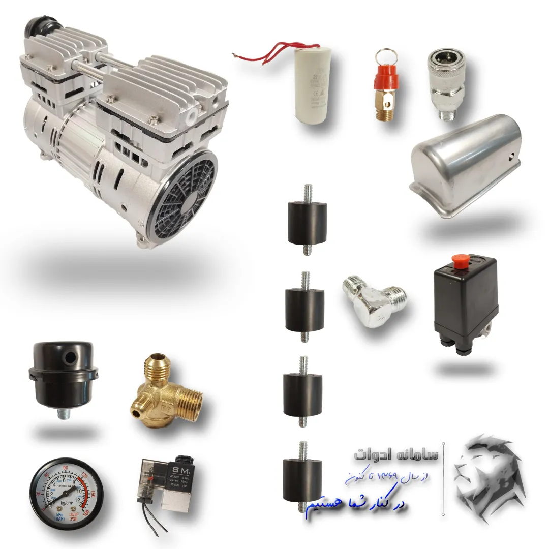 موتور کمپرسور باد بدون روغن 550 وات همراه انواع ملزومات مورد نیاز جهت تهیه کمپرسور باد | دارای دو سیلندر قدرتمند و سیم پیچ تمام مس | اطلاعات بیشتر⇐ توضیحات تکمیلی
