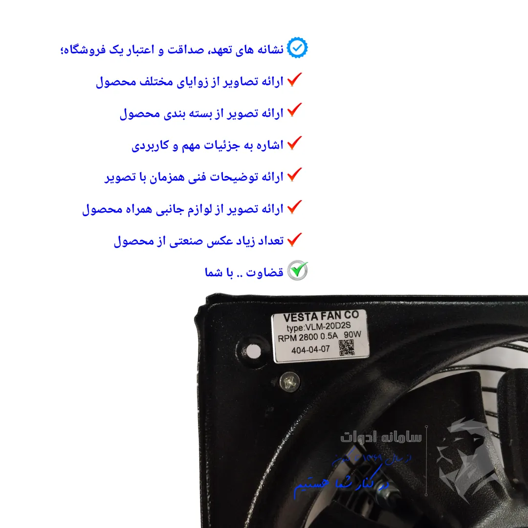 میزان کیفیت فن هواکش صنعتی 25 در 25 وستا :