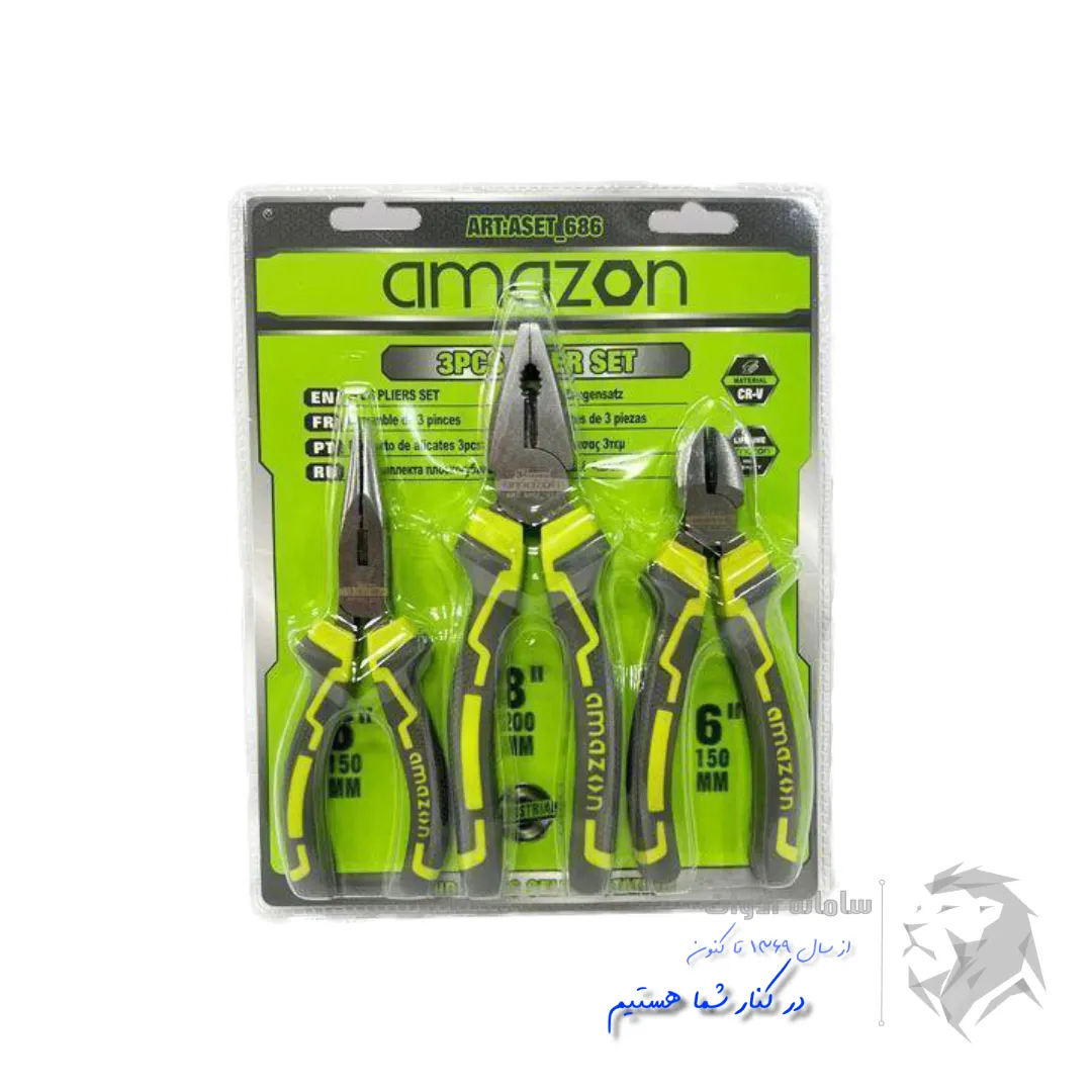 ست انبردست و دمباریک و سیم چین آمازون هر سه ابزار ساخته شده از فولاد کروم وانادیوم | سیم چین سایز 6 دمباریک سایز 6 و انبردست سایز 8 | دارای روکش با دوام و ارگونومیک | جزئیات بیشتر ⇐ توضیحات تکمیلی ..